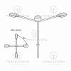 Конструктивно развороты кронштейнов К4-1,5-1,0-/90-Ф4 исполняются по схеме «4 рожка под углом 90 градусов». При этом угол разворота между рожками в вертикальной плоскости имеет диапазон от 0° до 180°, в связи с чем расположение светильников у четырехрожковых кронштейнов может иметь любую вариантность.